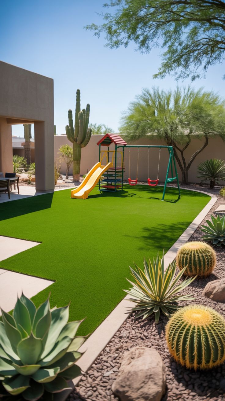 The one harsh truth about Arizona is that water ration could be scarce and maintaining a green turf would be impractical. But that should not stop you from laying down a mattress of greens in the middle of your backyard and make a lush space where you could bathe in the sun and play.