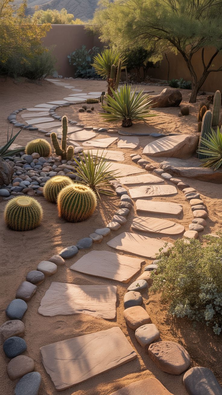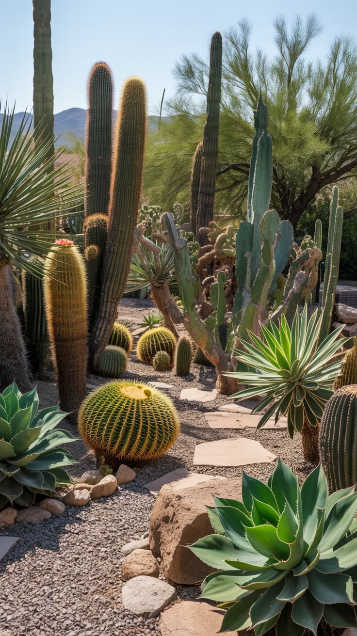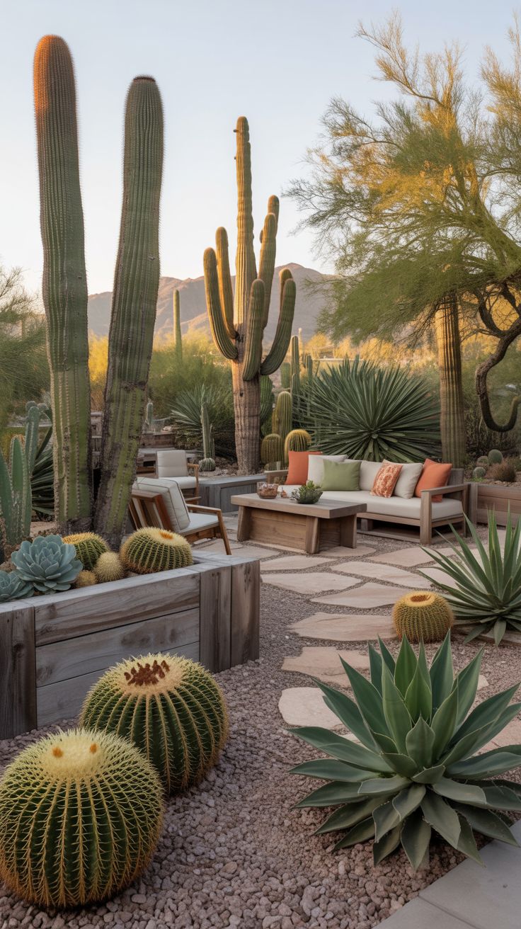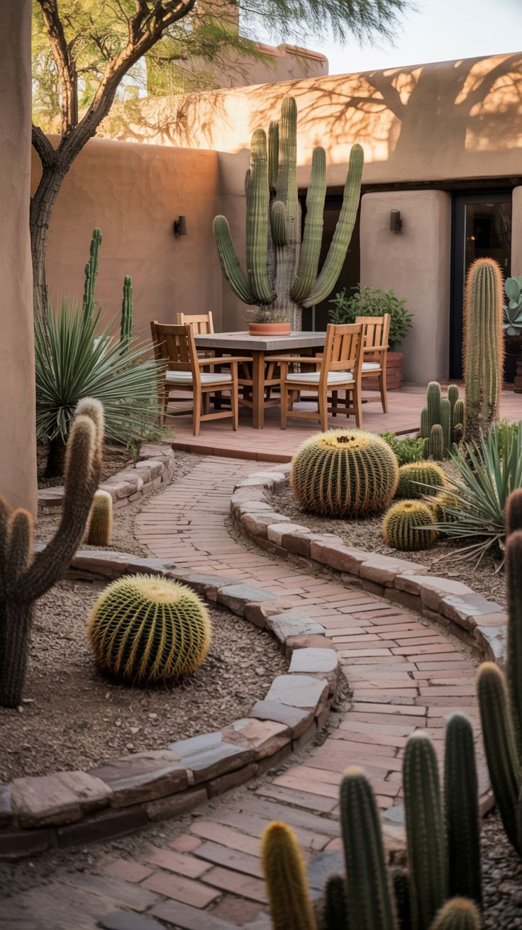 With enough space, some cobblestone stairs and a whole lot of succulents and cacti in the middle of other flowering plants and other lush trees, you can have a mystic earthy touch to your Arizona backyard like this one from The Spruce.