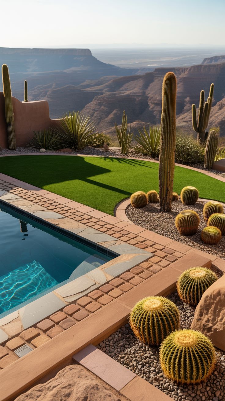 Overlooking the canyons and some big cacti on the side will also go well on an Arizona backyard with a pool. Some cobblestones and artificial grass would pump it up all the more. Look at this idea from Houzz.