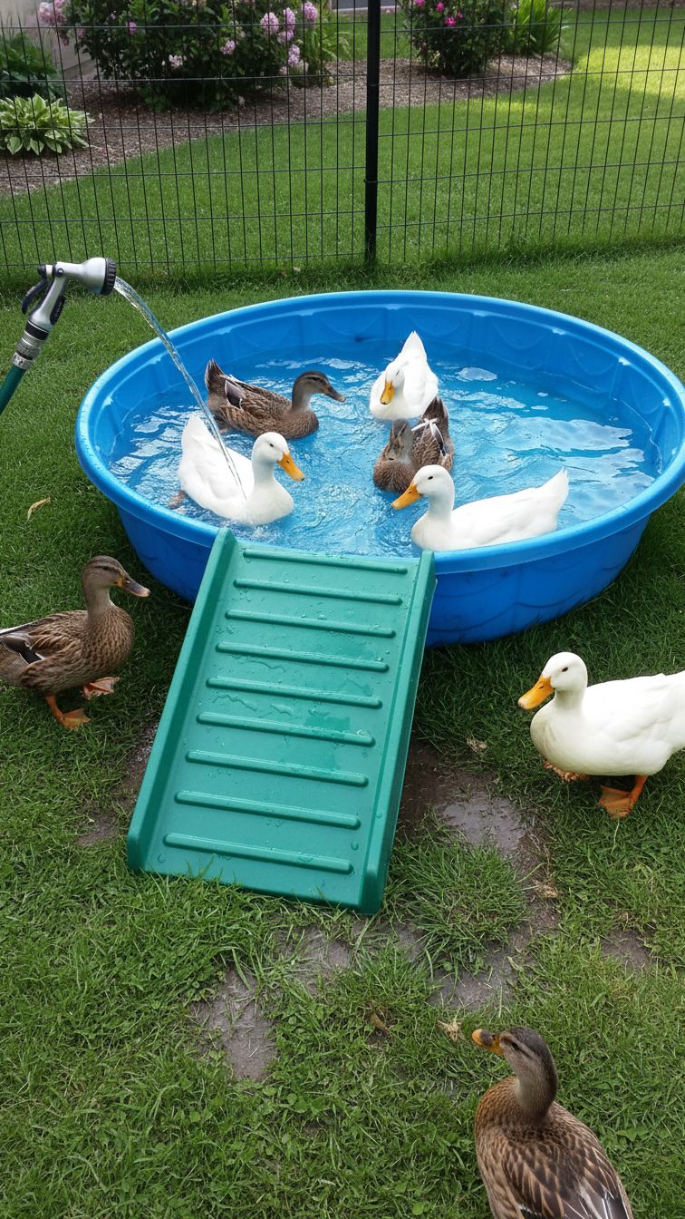 Backyard Ducks don’t need a pond to be happy, but they enjoy swimming in a pool of water. They also need deep enough water sources to keep their mucous membranes moist all the time.