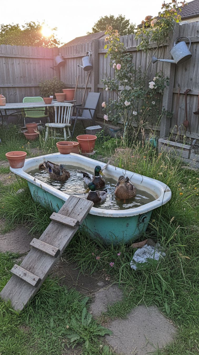You may be having a separate bathtub in your compound that no one is using. Why not use it as a pond for the ducks in your backyard? A separate tub usually is significant in size and can fit many ducks. Remember to add a ramp to make it easy for them to climb in and out of the pond.