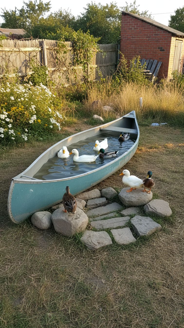 If you belong to this group of people, you may want to consider using a canoe as the duck pond in your backyard. You can place it near big stones to allow ducks to jump in with ease.