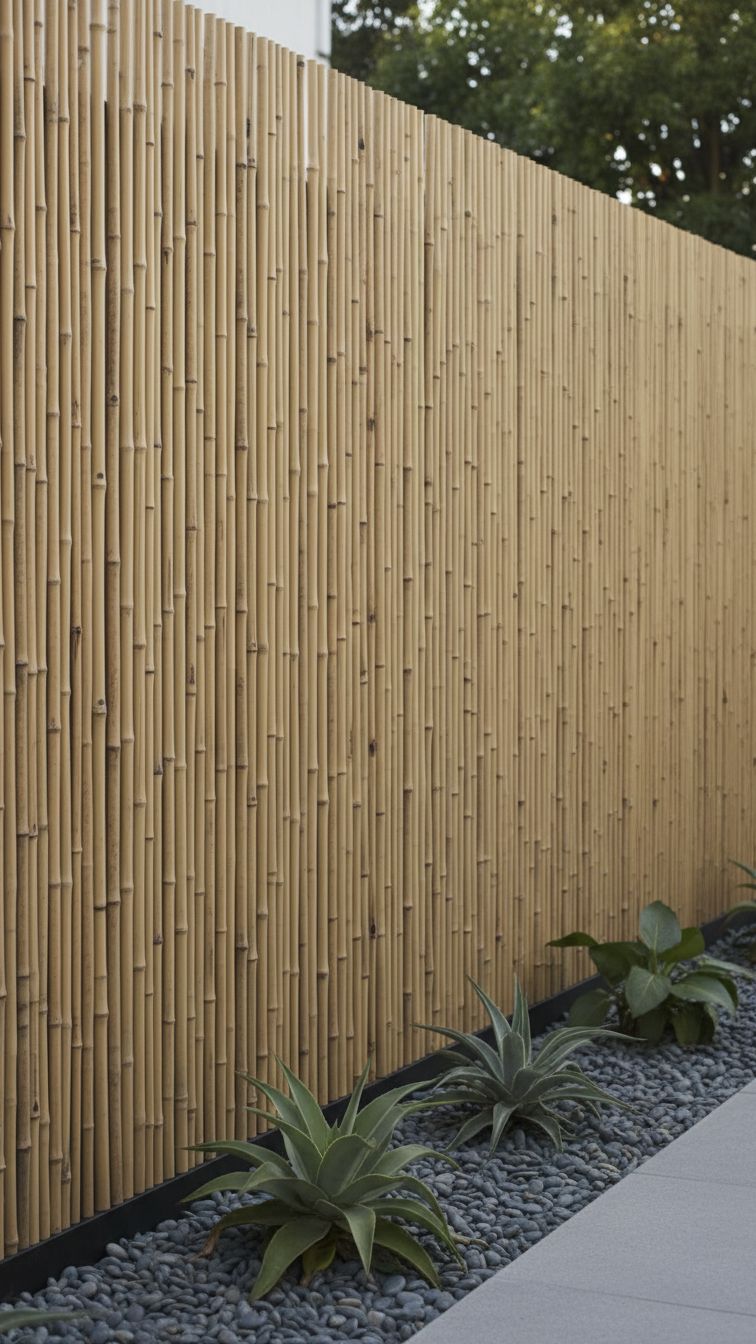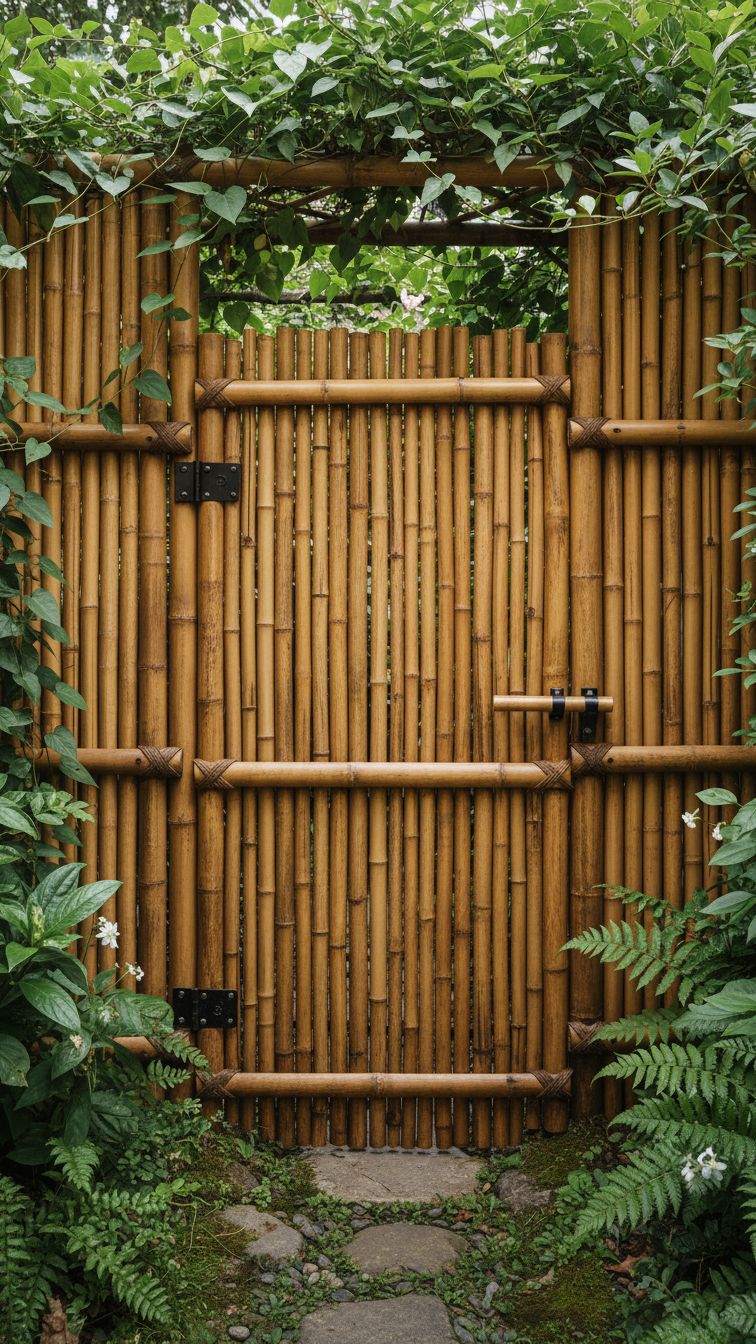 Incorporating planters or metal accents can further personalize your fence, while a thoughtfully designed bamboo gate completes the look.