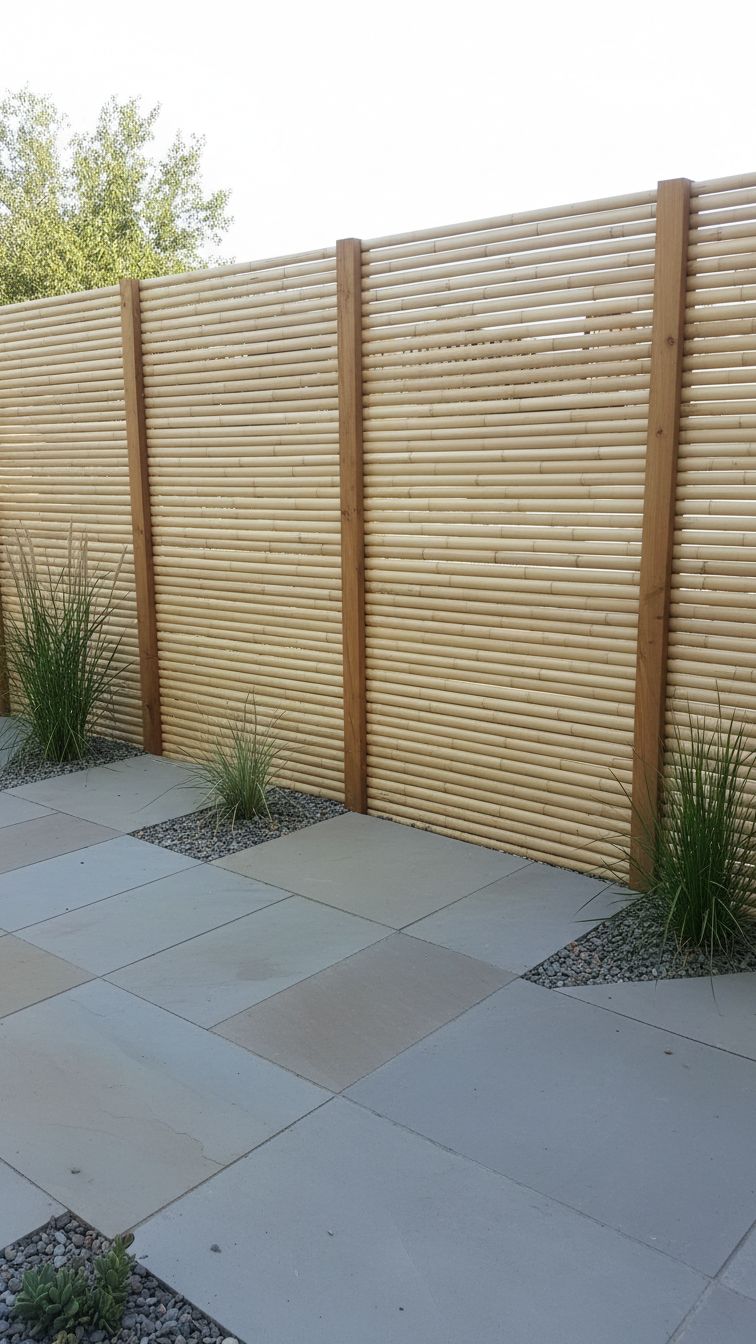 A bamboo slat fence offers a modern and stylish look. The slim, vertical slats provide excellent air circulation and light filtration, making your space feel airy and open.