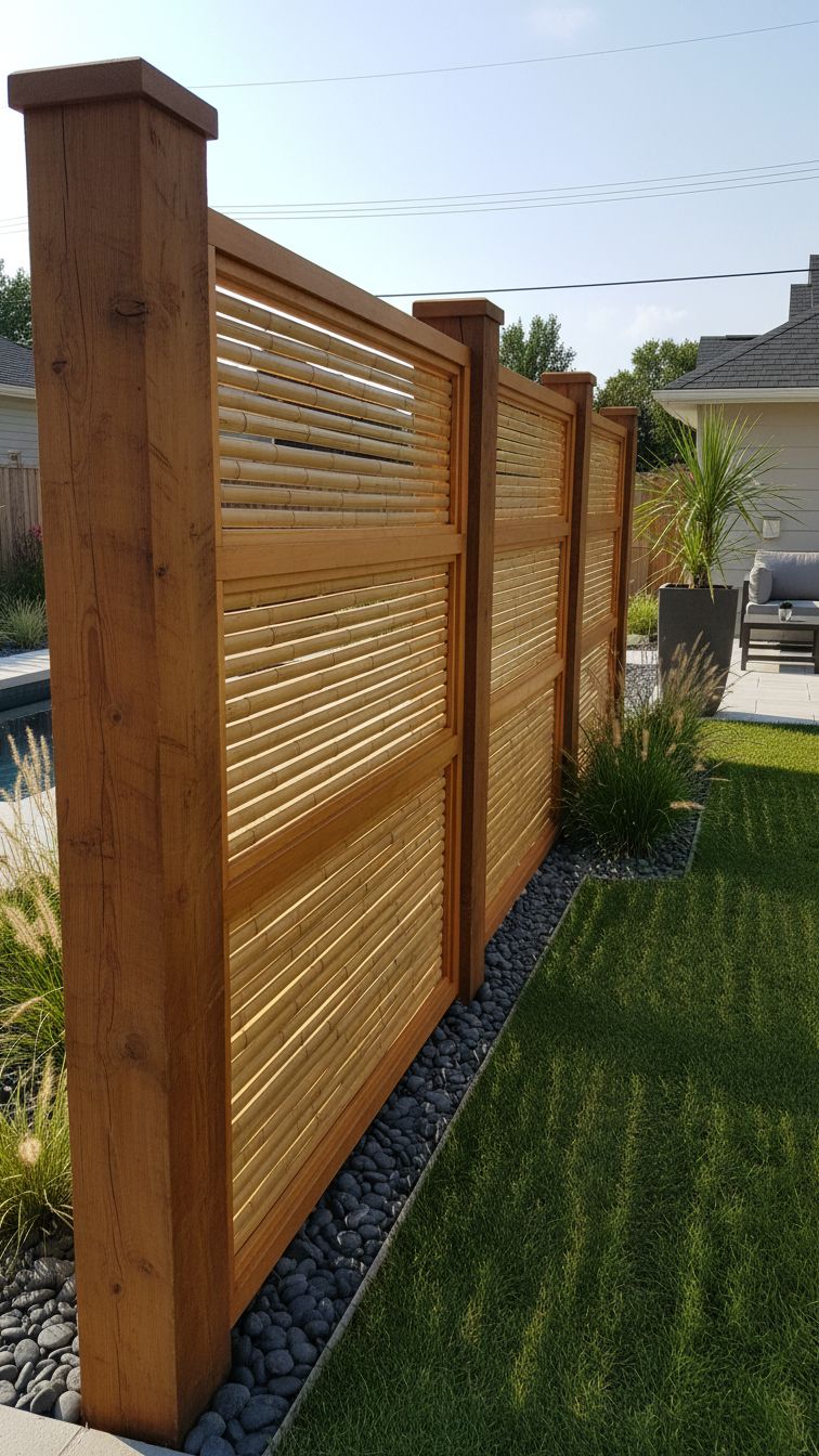 Combining bamboo with wood creates a unique bamboo and wood combination fence that offers both strength and style.