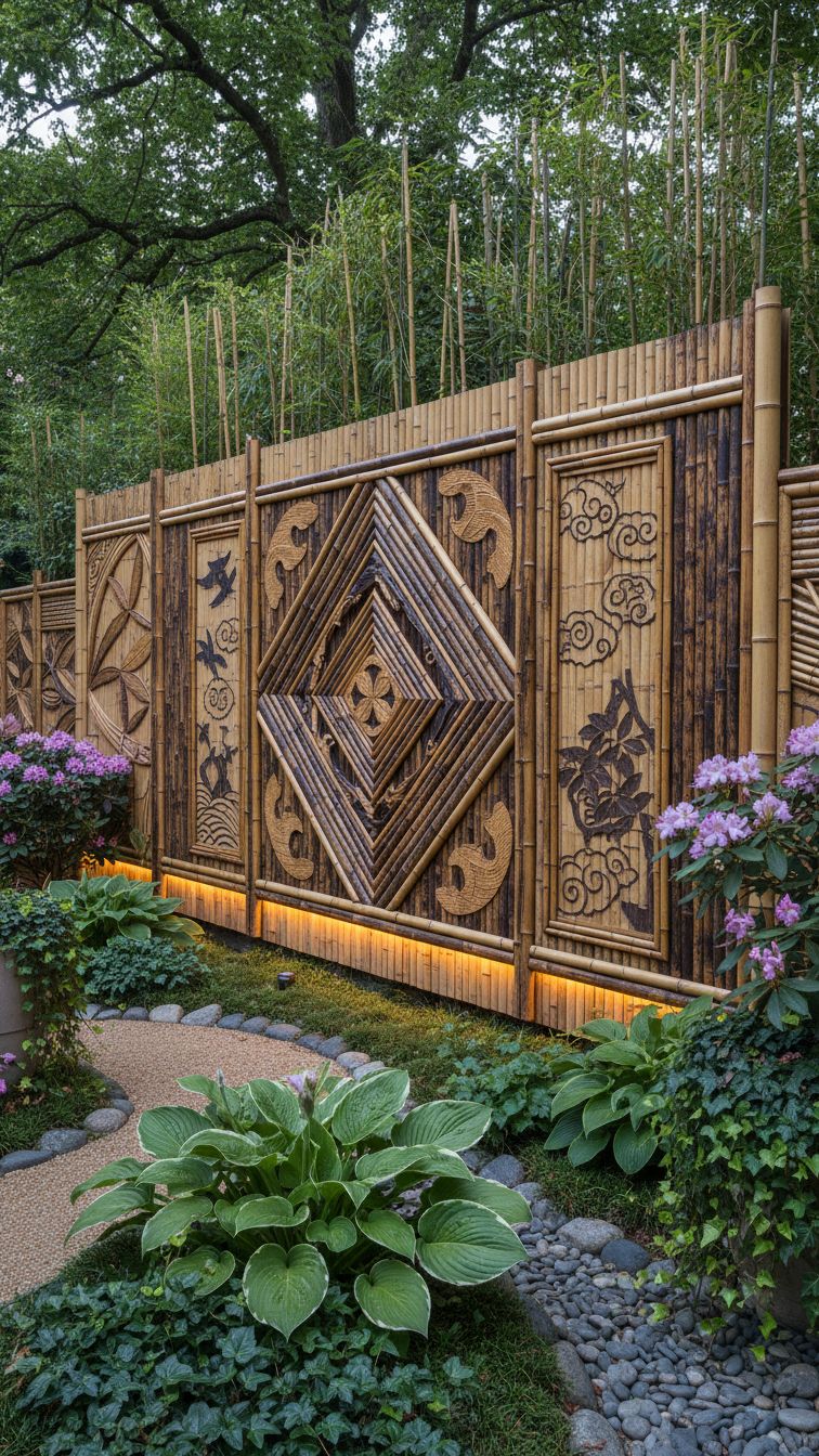 Decorative bamboo fences bring an artistic flair to your garden. With intricate designs and creative patterns, these fences are more than just barriers—they’re statement pieces. From geometric shapes to natural motifs, the options are endless.