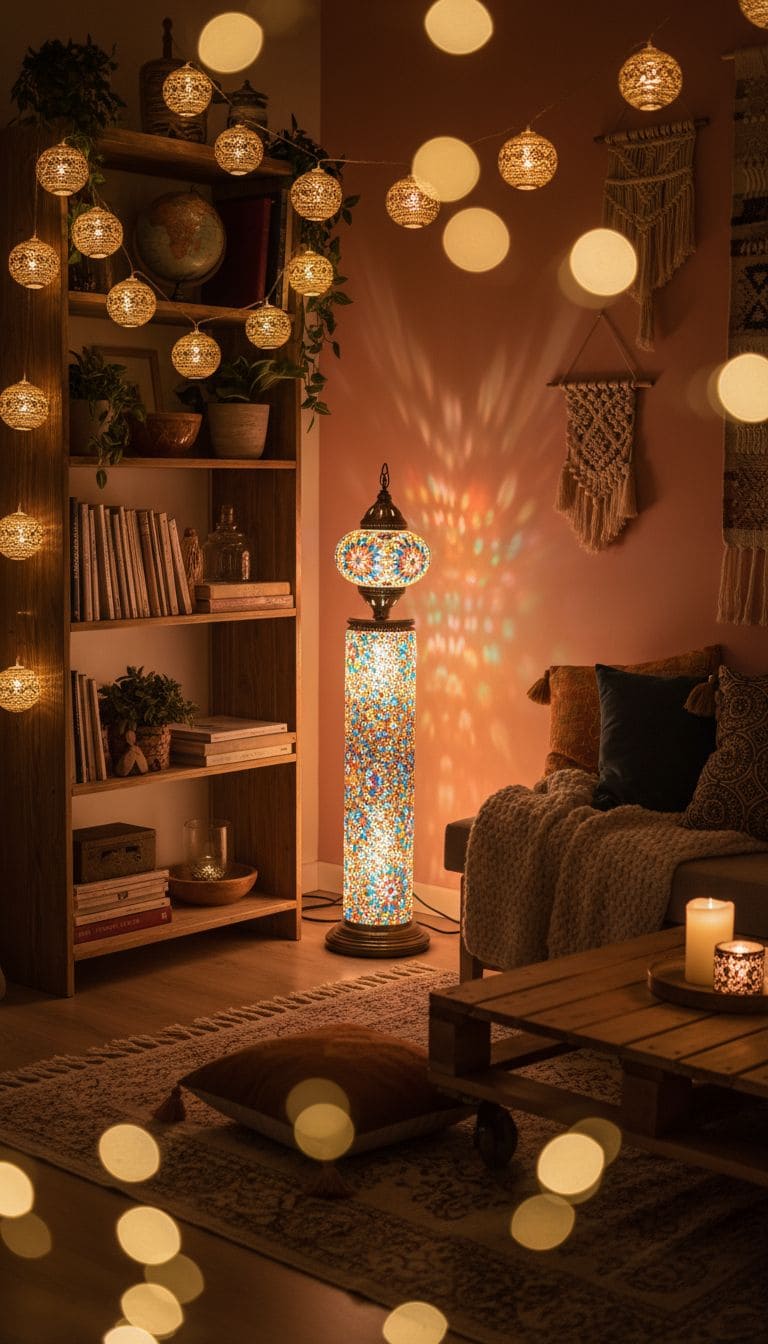 Set the right mood with some quirky bohemian lighting. String lights, lanterns, and unique lamps can change the whole feel of a room from just lit to lit up with style.