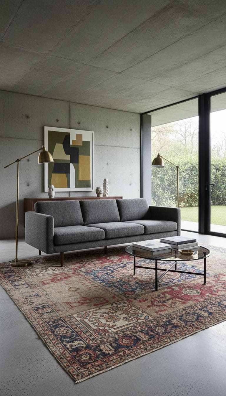 Marry modern and vintage elements for a living room that stands out. Mix a sleek, contemporary sofa with an ornate, vintage rug beneath it.