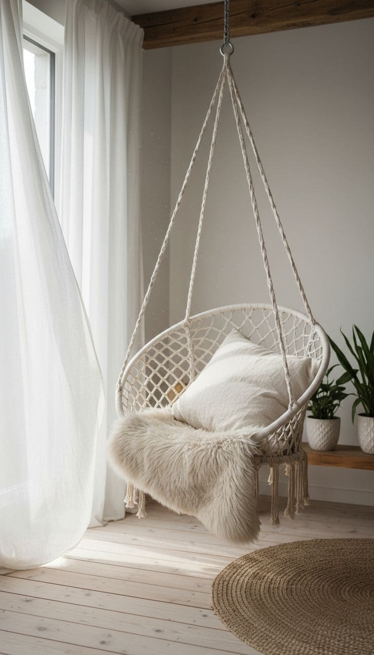 Incorporate hammocks or hanging chairs for a unique twist on seating. Perfect for lounging or just swinging your cares away, these pieces make your living room feel like a getaway.