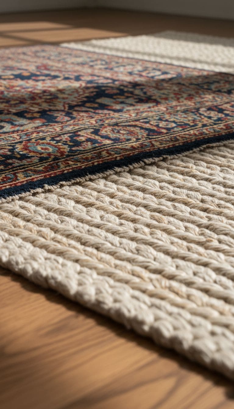 Mix materials and designs for a look that says you’re all about comfort and style. It’s like each rug is a stepping stone to another part of your boho paradise.