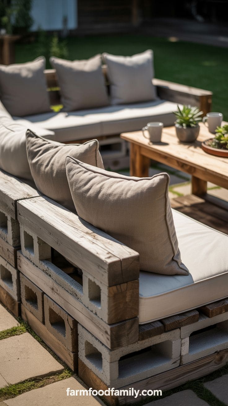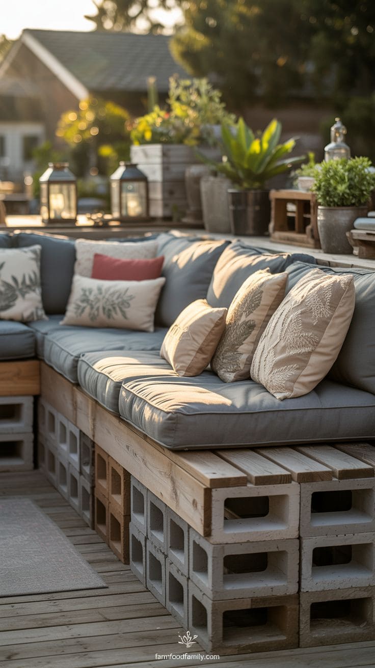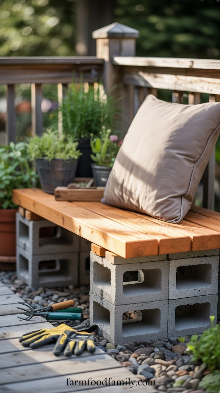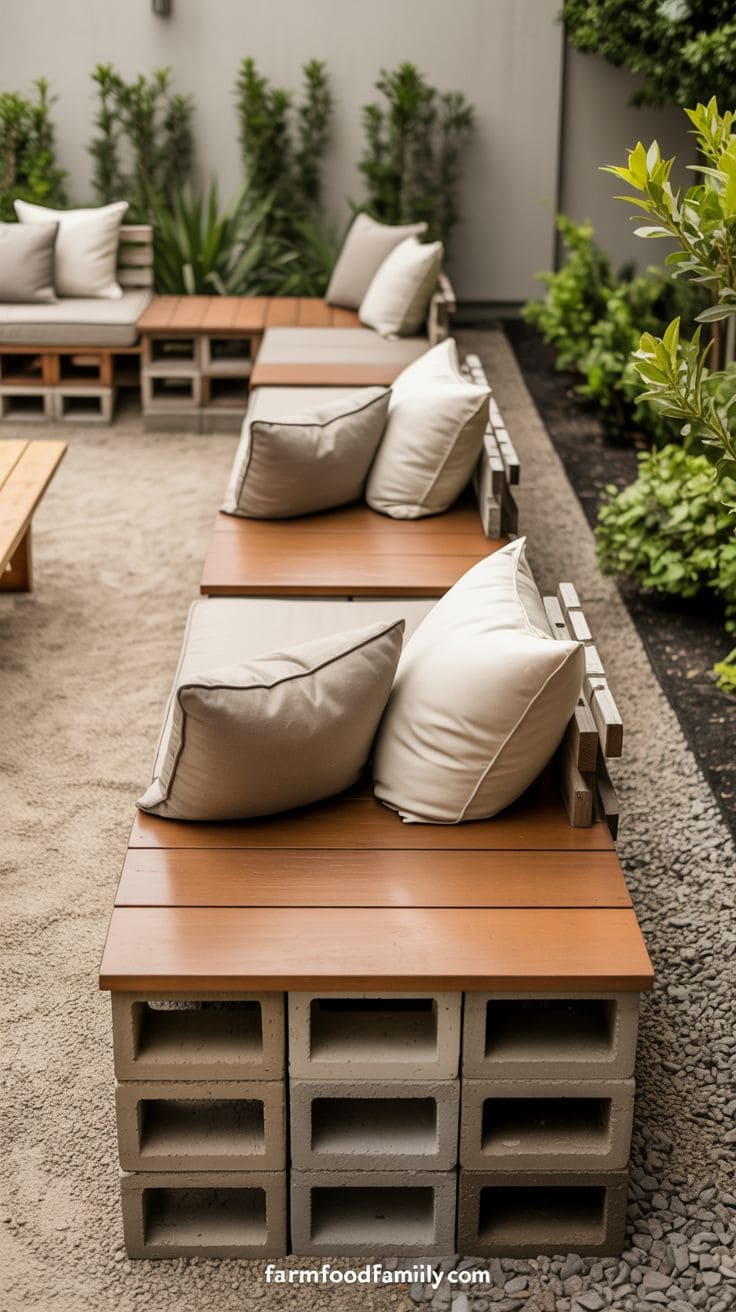 If you find that your cinder block bench is too plain, you can use cushions to accessorize it further. Standard living room cushion also work well for cinder block benches.