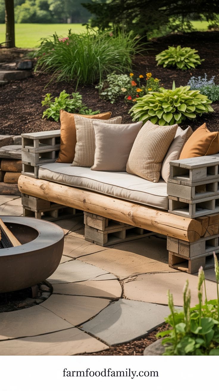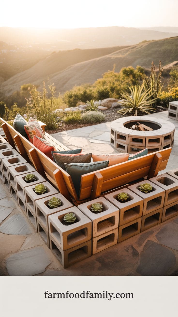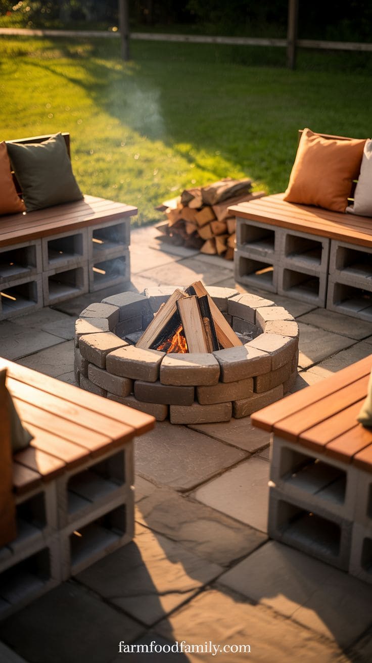 10. DIY Cinder Block Outdoor Bench With Firepit