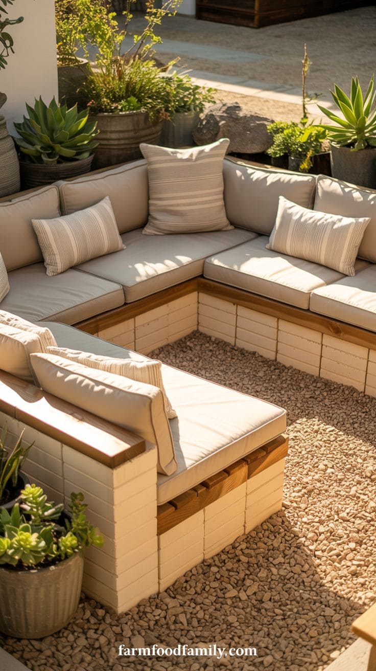 For this size, it is perfect for large patios with fire pits or for outdoor nooks like this one here. Use cushions and pillows to top off the design. At most, you can finish this design for half a day.