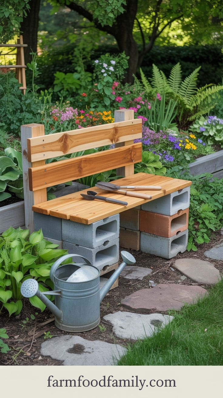 You can also make potting benches from cinder blocks. The process is the same as if you were making a bench.