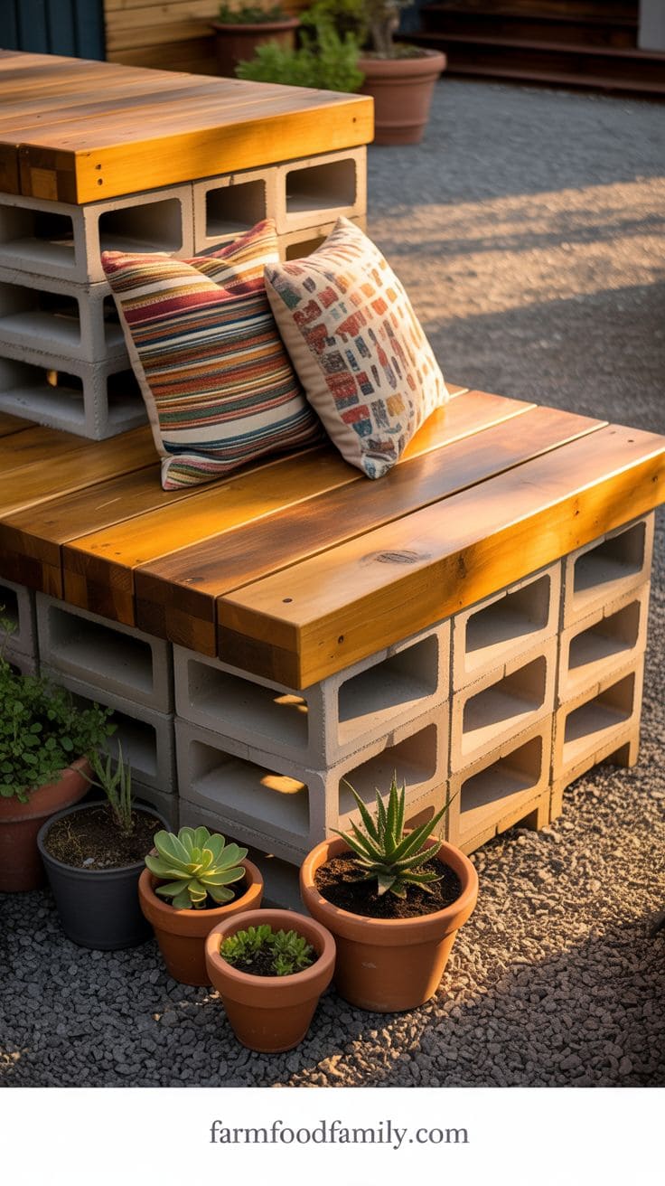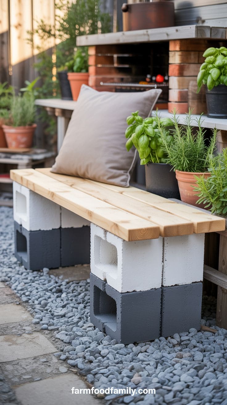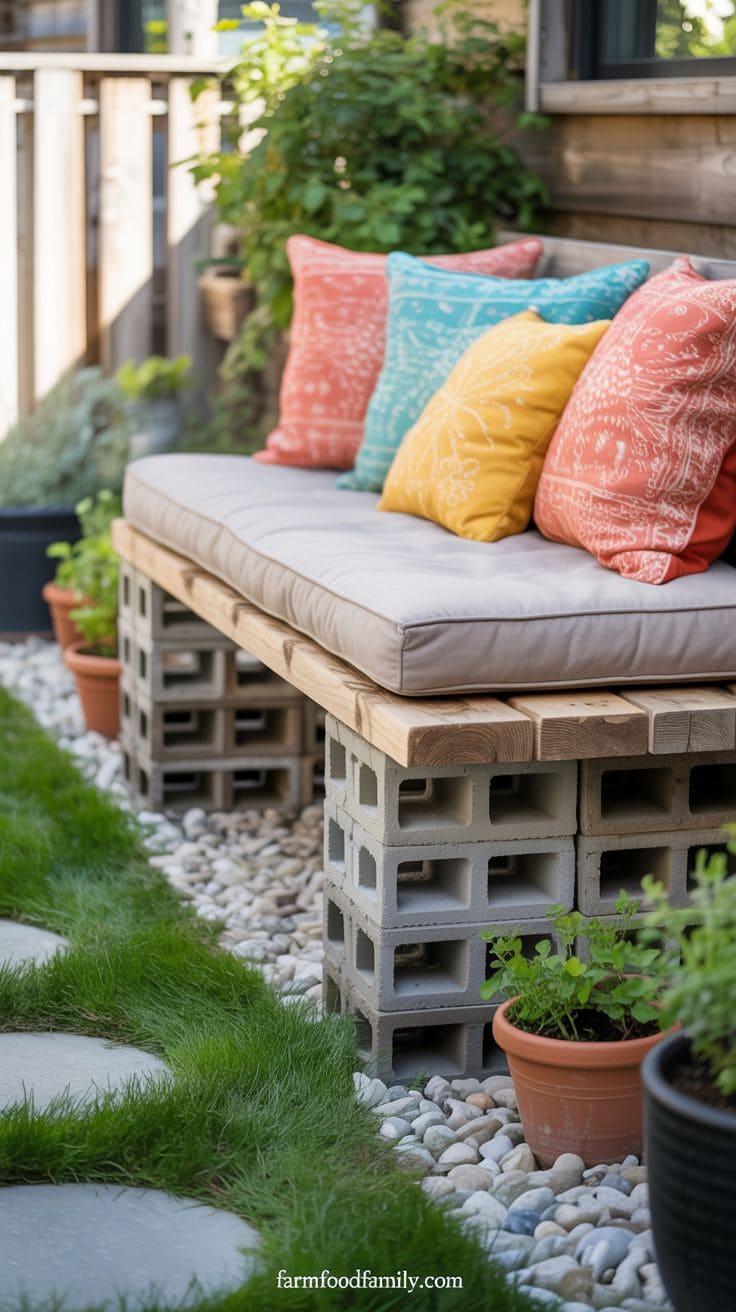 You don’t need to spend so much to have an artsy outdoor bench. This bohemian inspired cinder block bench costs less than $30.