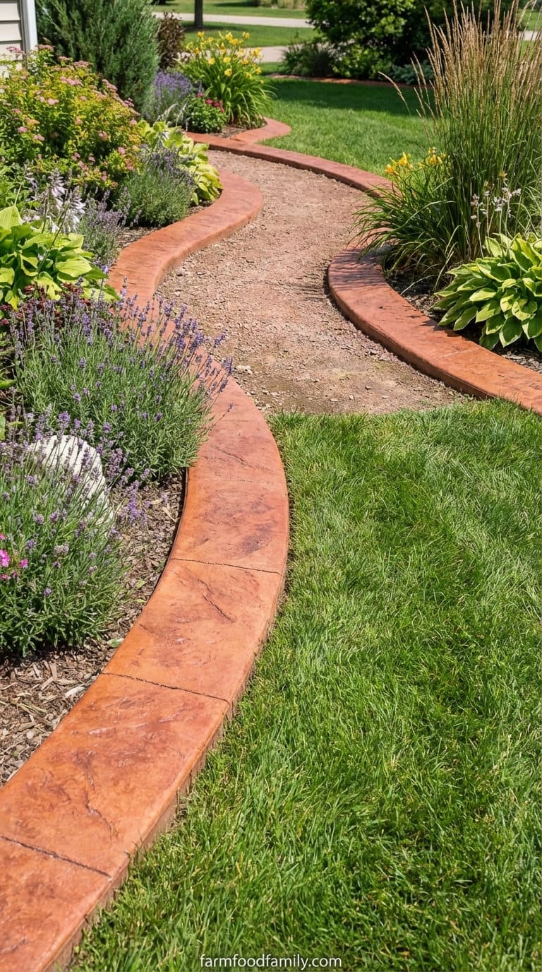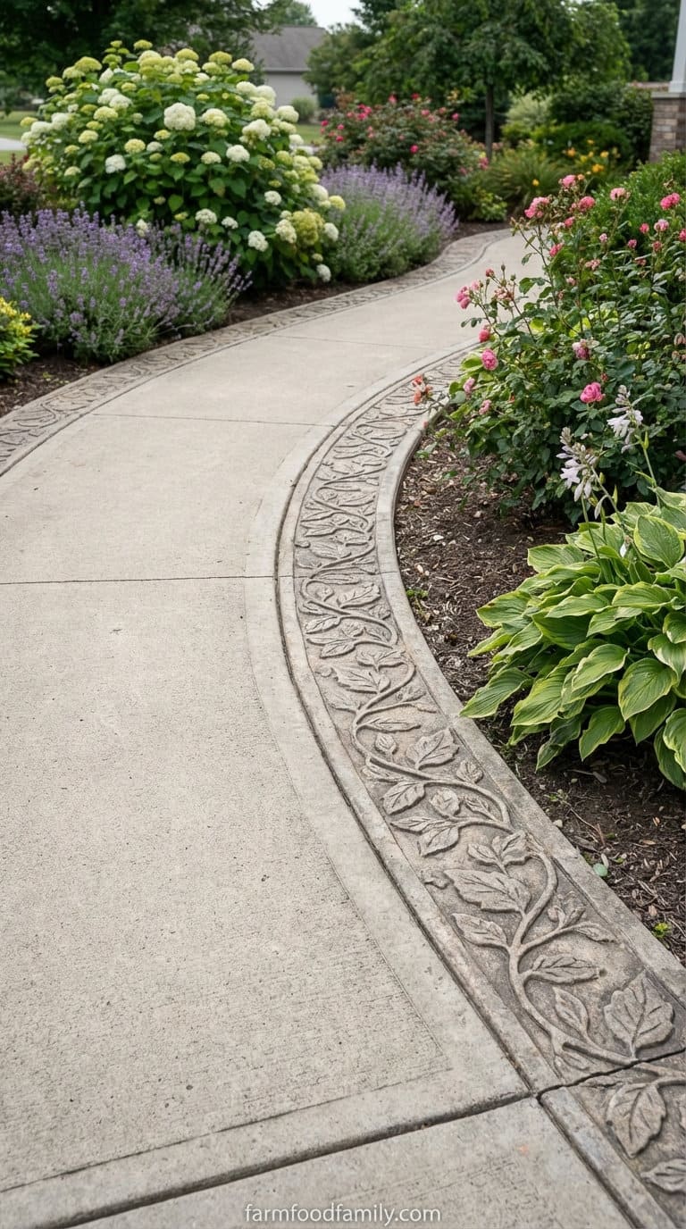 Patterned concrete edging offers pre-cast designs that add a decorative touch to pathways and garden edges. It’s a way to introduce art into your garden’s architecture without overwhelming it.