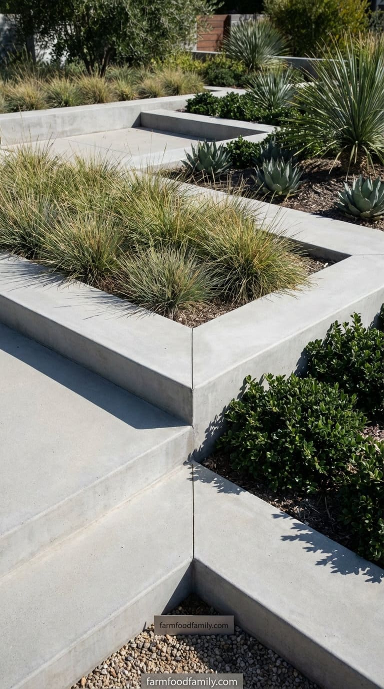 For a garden that makes a statement, go with geometric concrete edging. The sharp, angular designs provide a structured look, perfect for modern and formal gardens. It’s like math class, but make it garden style.