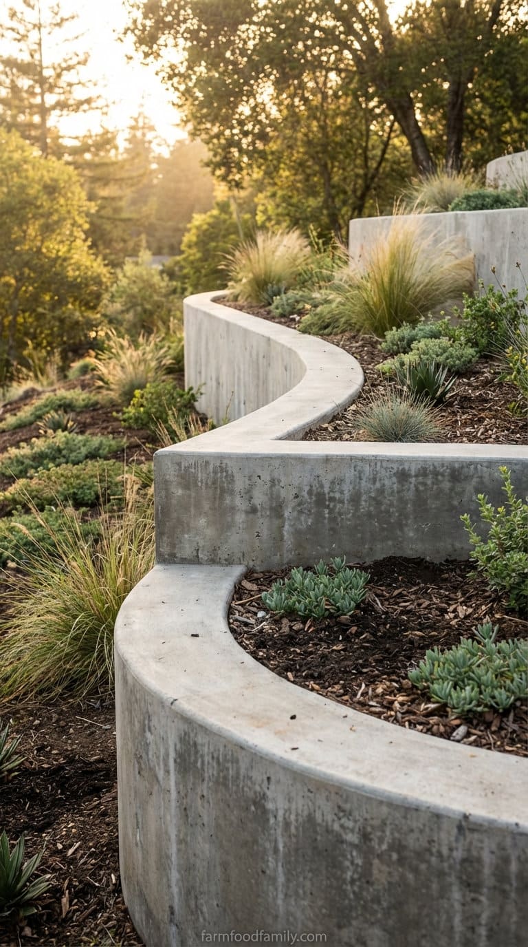 For gardens on a slope or raised beds, raised concrete edging is a smart pick. It helps define garden beds and keeps your soil in place, preventing erosion. Not just practical, raised edging also adds a sculptural look to your garden layout.