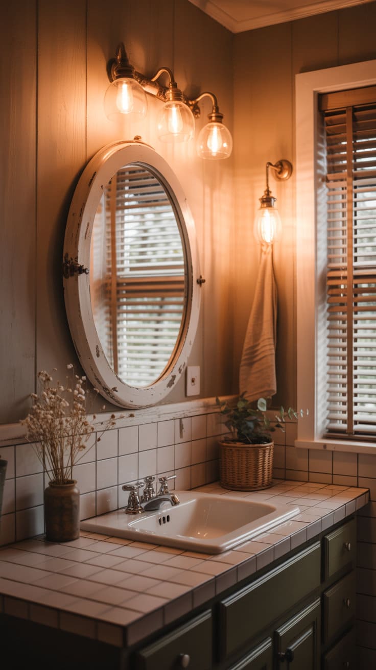 Vintage light fixtures serve as a focal point in any bathroom, casting a warm glow that enhances the room’s ambiance.