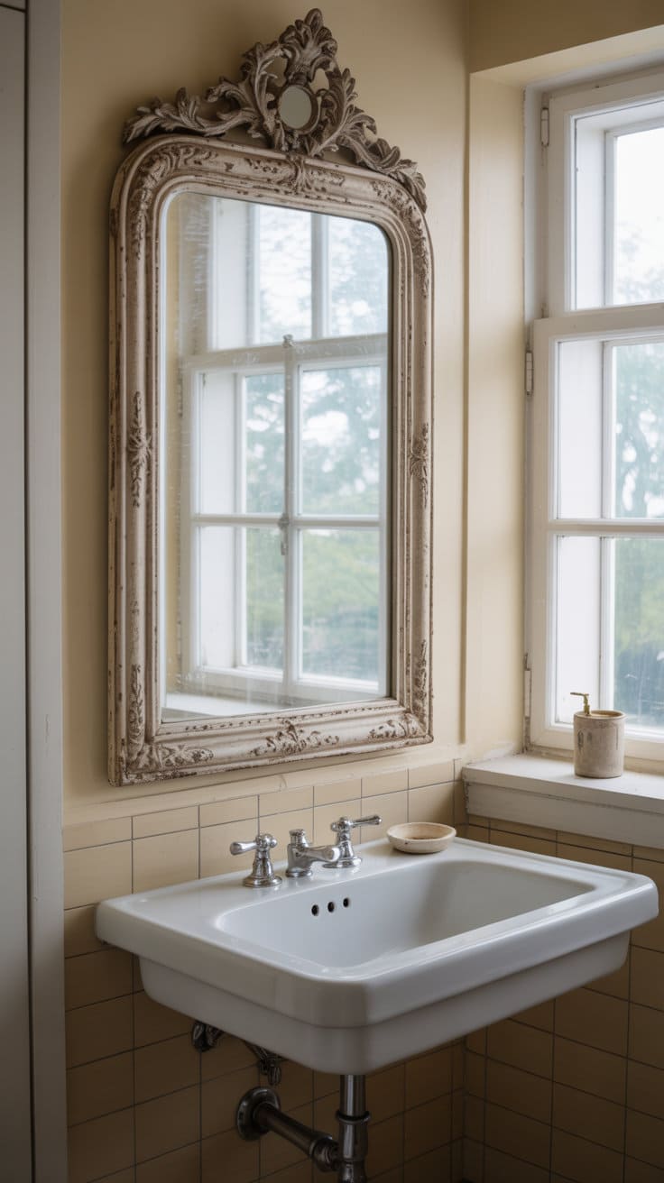 Adding an antique mirror to your bathroom does more than just let you check your look. It reflects your style and adds a sense of depth and history to the room.