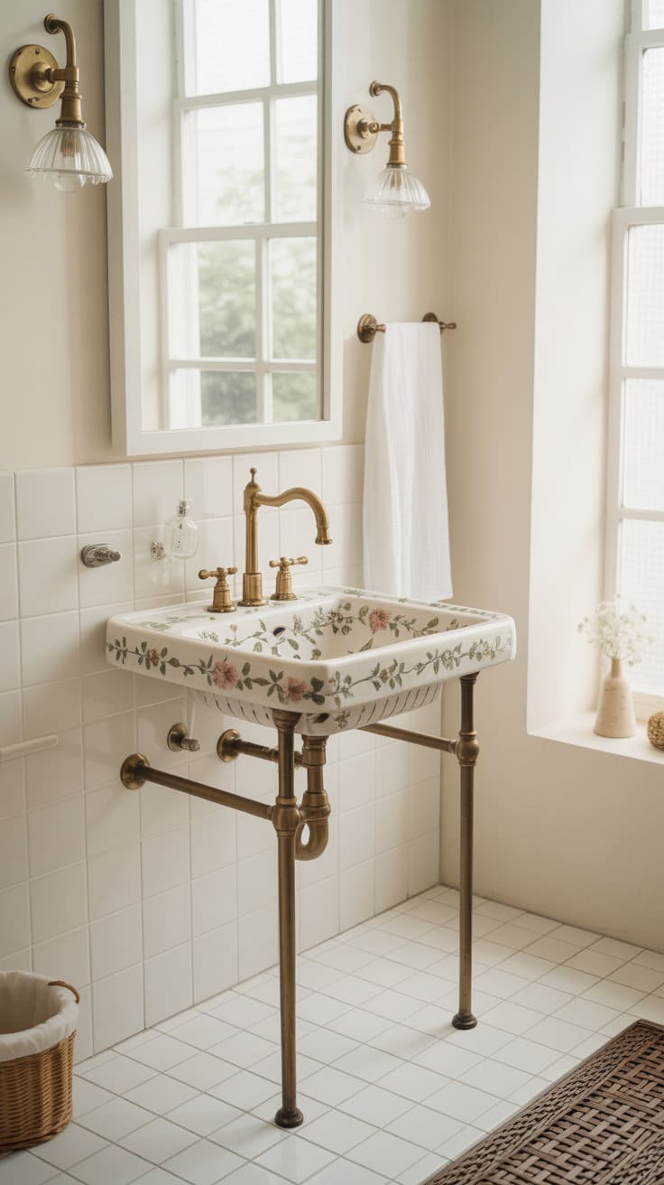Freestanding sinks might seem a touch modern, but they fit right into the cottagecore aesthetic with the right design—think porcelain with delicate floral patterns.