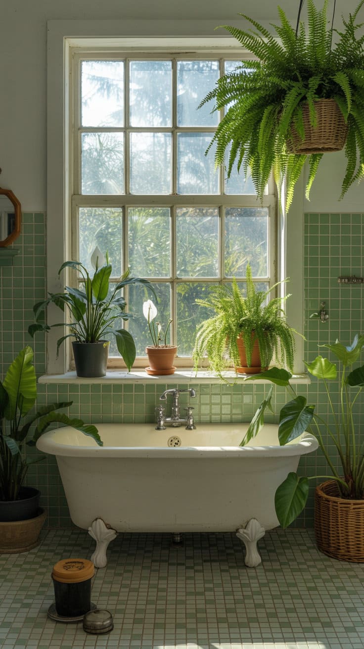 Opt for plants that thrive in humid environments like ferns or peace lilies. These greens need low light, perfect for the typical bathroom.