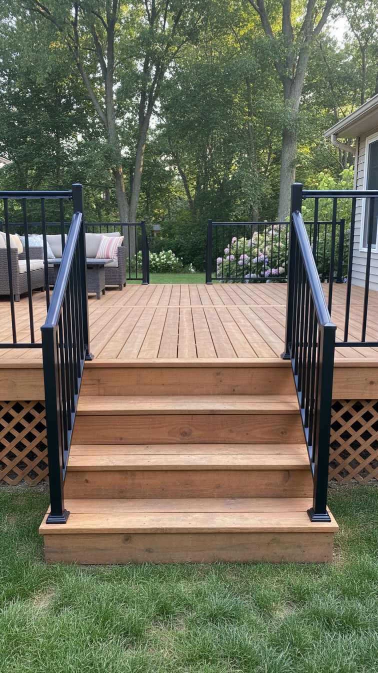 But if you want the traditional box type wood deck skirting with 2-3-step stairs and the same wood and metal rails, you can go for this.
