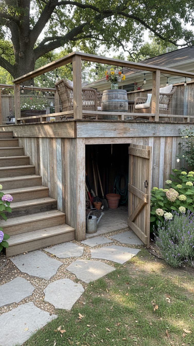 And if you have a more elevated space and you are thinking of transforming a part of it into a storage space, then you can give a rustic touch to your deck by considering this idea.