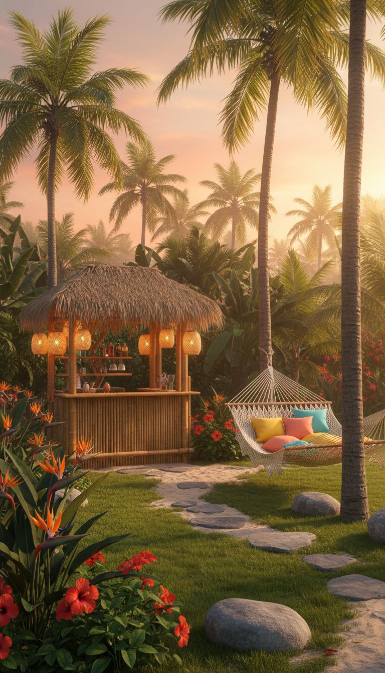Turn your backyard into a tropical paradise where every day feels like a vacation. Picture yourself chilling with a cool drink under palm trees, surrounded by exotic plants.