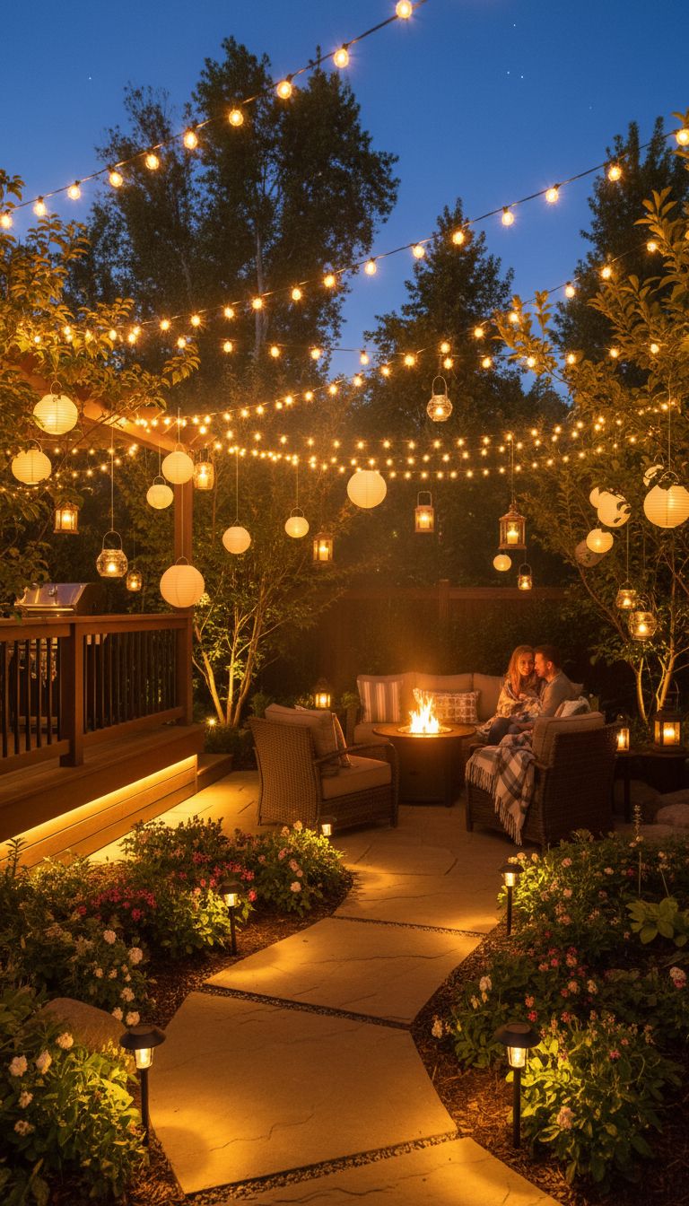 Set the mood and light up the night with some smart outdoor lighting. String lights, lanterns, or solar lights not only add ambiance but make sure you don’t trip over in the dark.