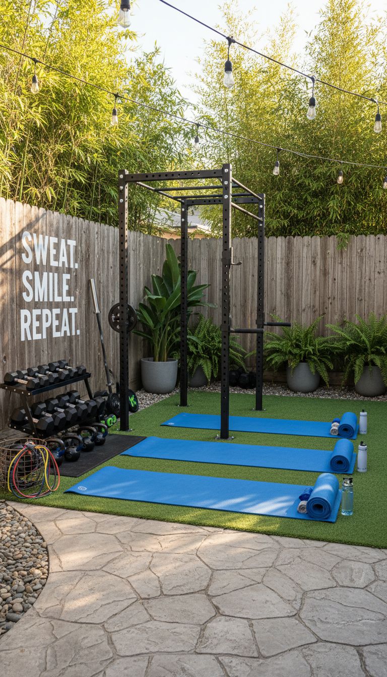 It’s all about staying fit in the comfort of your own space. Make sure your equipment can handle the outdoors, and always keep it tidy to avoid any trip-ups. Getting in shape just got a lot more convenient!