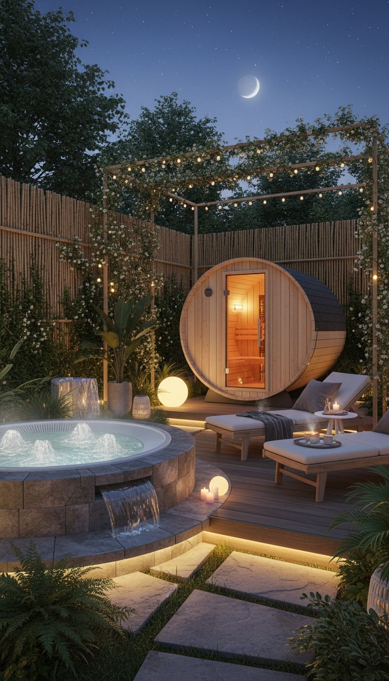Imagine unwinding in your outdoor spa with a hot tub or sauna, right in your backyard. Throw in some comfy lounge chairs for the ultimate chill spot.