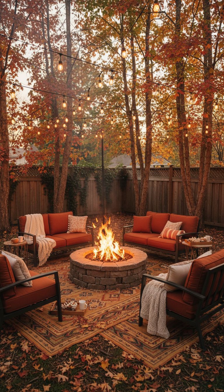 Throw some plush outdoor rugs down, and you’re set for those marshmallow roasting sessions. Just keep that fire pit clear of low-hanging branches, and always have water handy just in case, right?