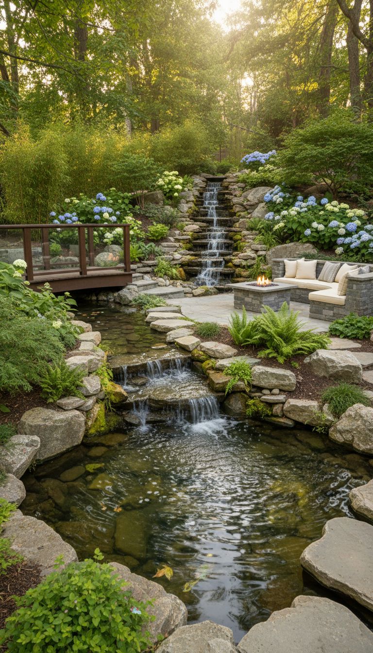 Water features can change the whole vibe of your place. Think fountains, ponds, or a cascading waterfall.