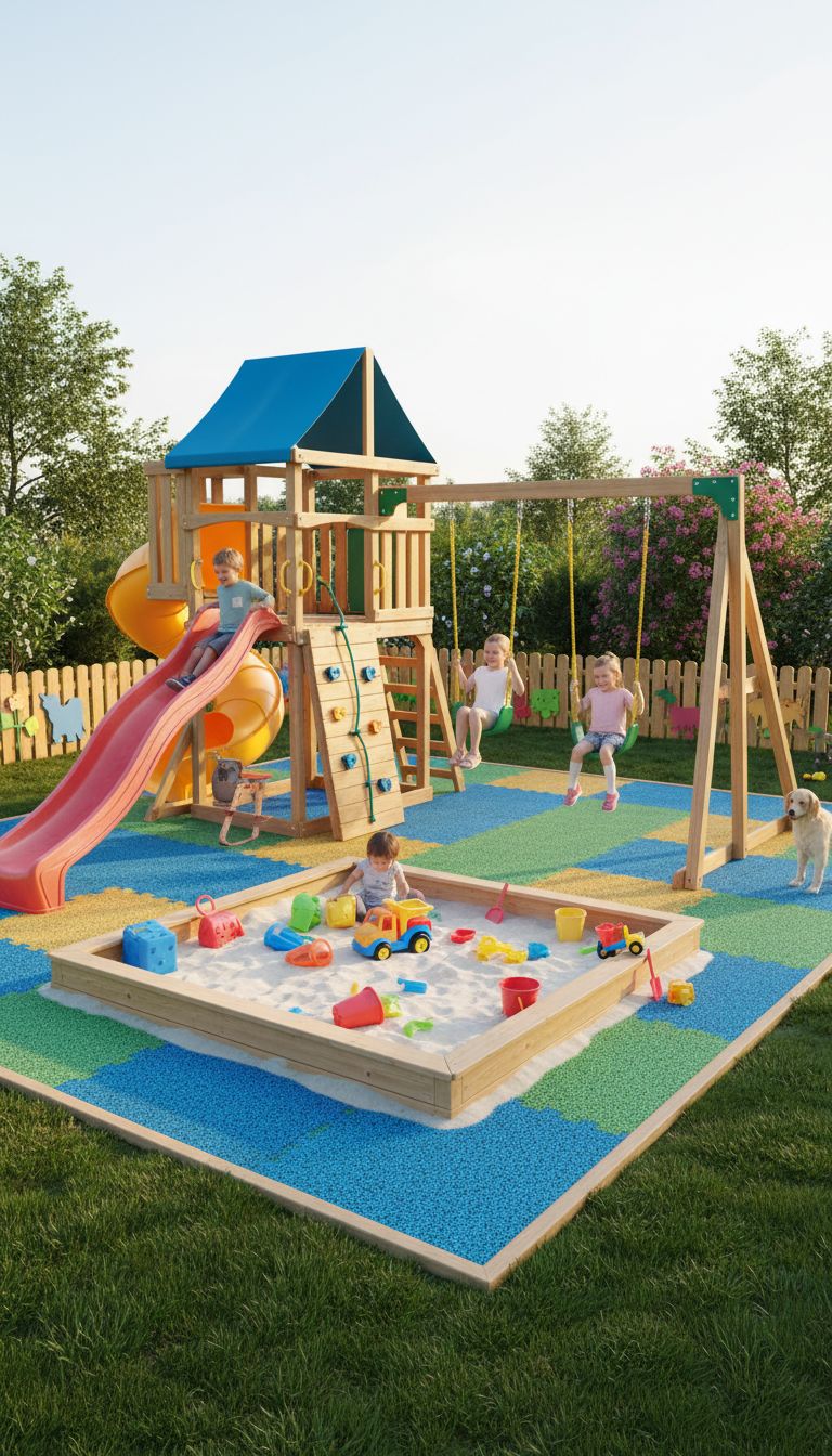 Kids need a place to let loose, right? Build a children’s play area with cool play structures, fun sandboxes, and soft, safe surfaces. It’s all about keeping them busy and safe.