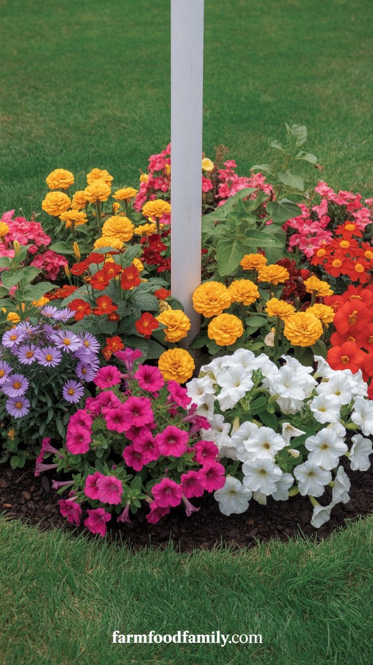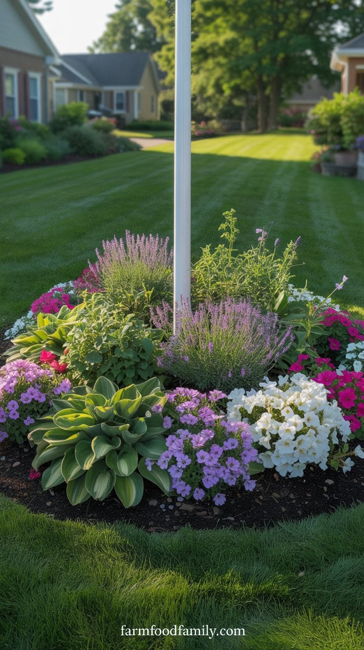 Who doesn’t want a garden bed bursting with colors around their flagpole? You can plant a mix of flowers and green plants that really stand out.