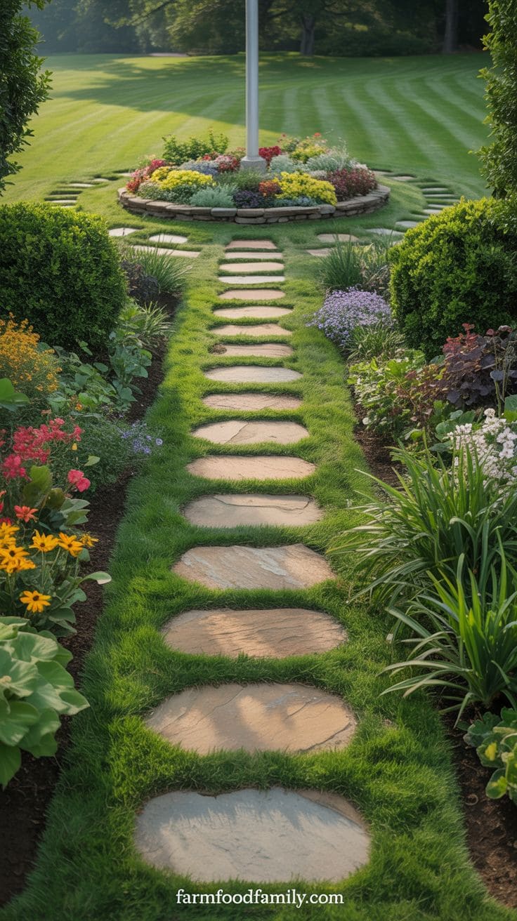 Why not build a pathway leading right up to your flagpole? It invites folks to take a closer look and can be pretty handy after rain, no more muddy shoes!