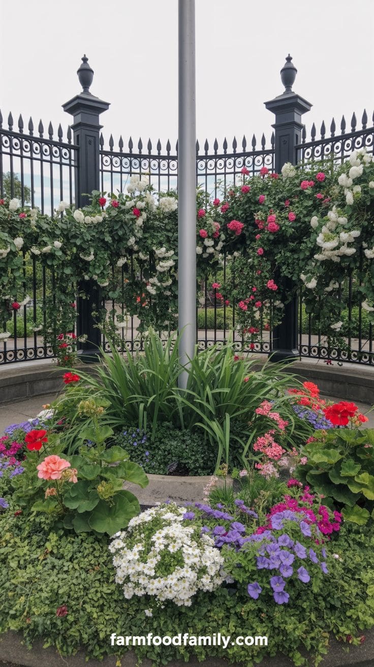 It’s about more than just decor; it’s about making your flagpole a landmark. Position these elements so they complement the flag and the flowers, pulling the whole garden together.
