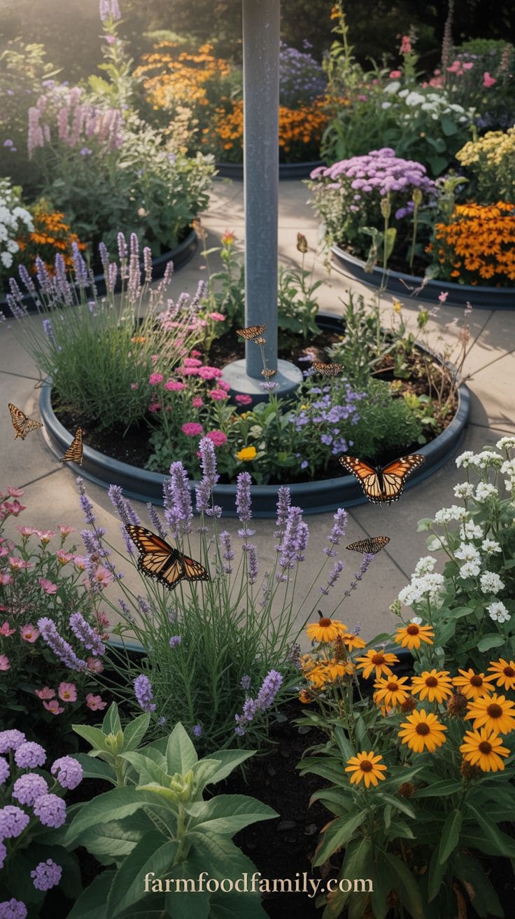 Plant milkweed and lavender for a butterfly garden; basil and thyme for an herb garden. It’s about picking plants that draw in the eye and maybe the nose too, making that flagpole spot a standout.