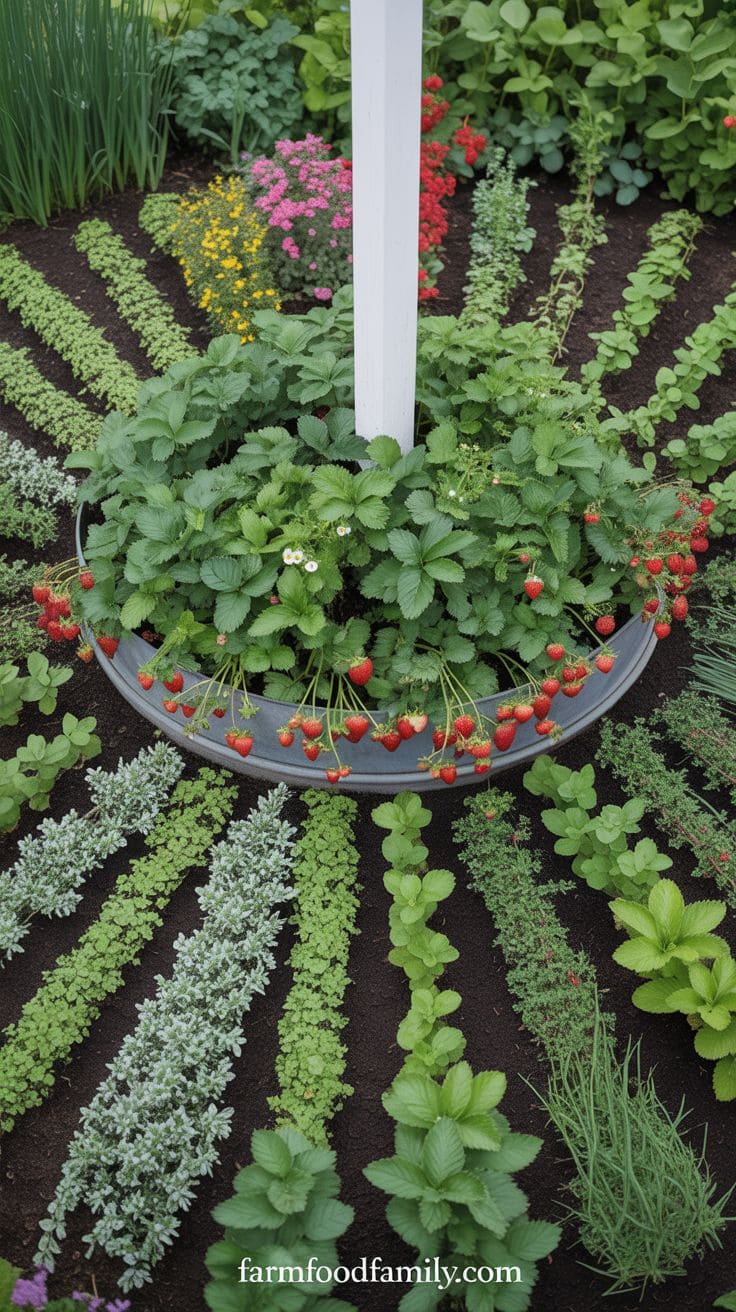Plant stuff like strawberries, thyme, or chives, which not only look good but taste great too. It’s a smart way to make your garden work harder for you, giving you fresh produce and lush greenery, all from the same patch of soil.