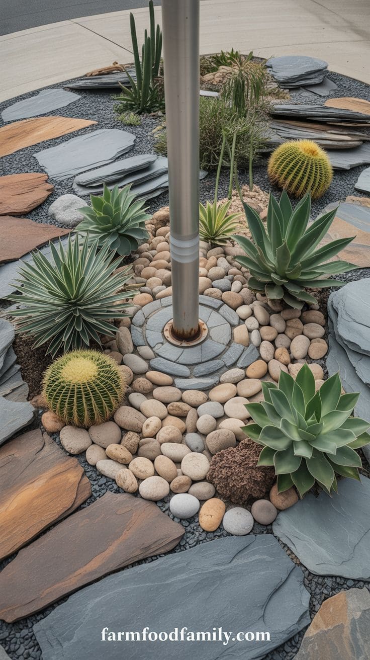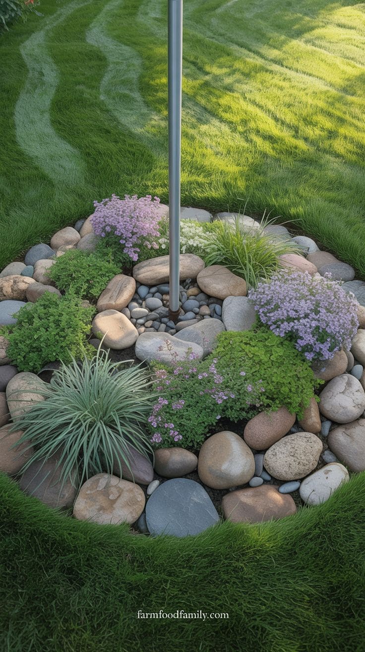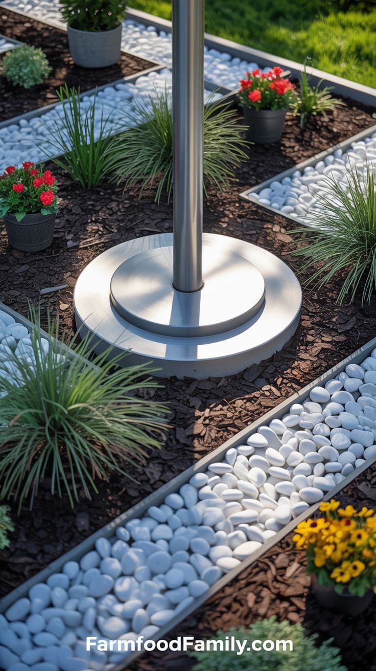 Circular stone arrangements make your flagpole look like it’s got its own castle wall. Pick stones that vibe with the rest of your yard—whether that’s smooth river rocks or rugged quarry stones.
