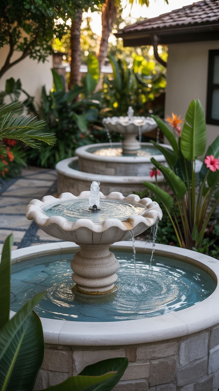 To give a sense of serenity and tranquility, consider attaching one or a series of water fountains to your backyard.it gives an ideal look for a backyard retreat. You could get quite several backyard water fountains on amazon.