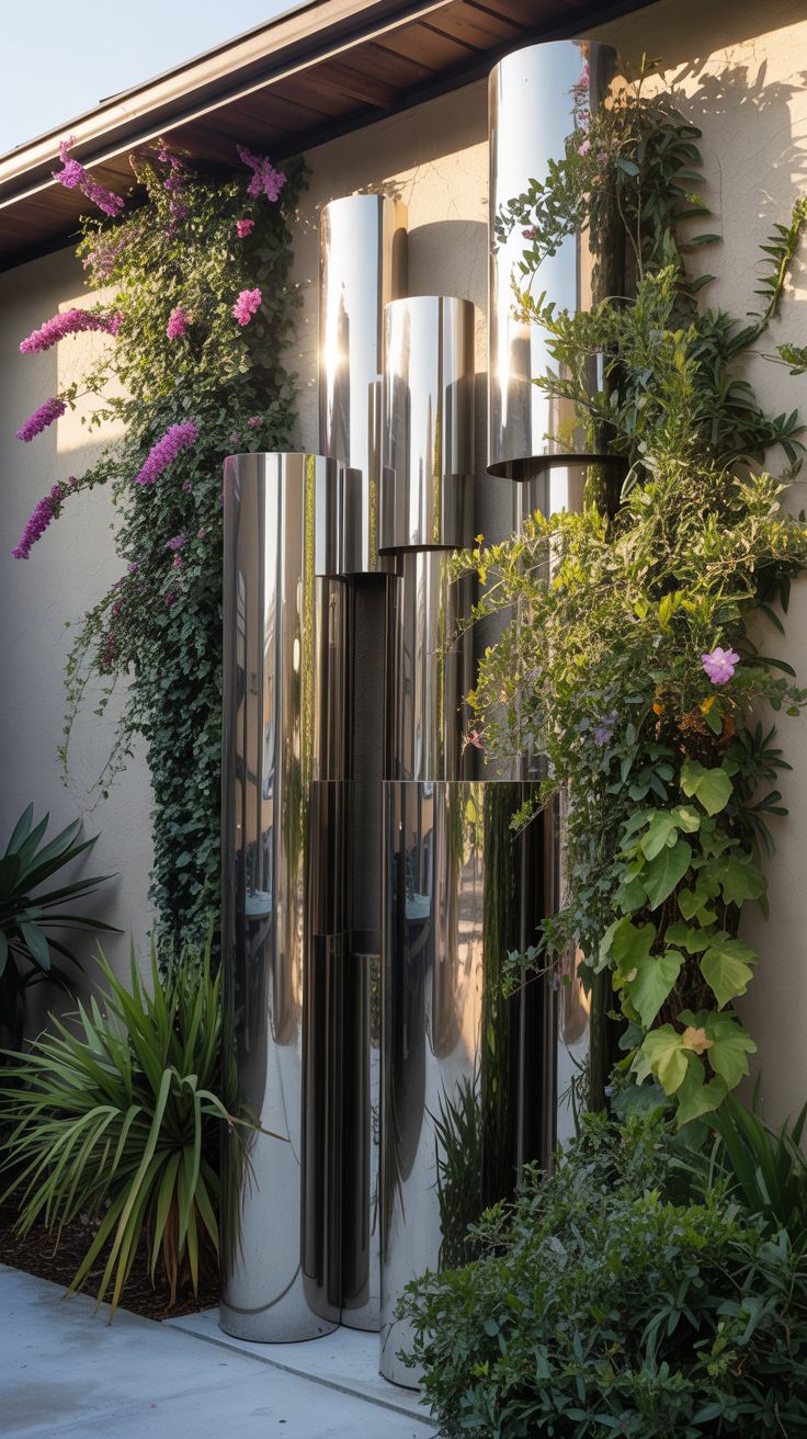 The cylindrical and adjustable reflective mirrors both glare and are heatproof. Fix these mirrors onto a framework for planting plants and flowers to give you an eye-catching show of light during the day and night. Get these mirrors from amazon.