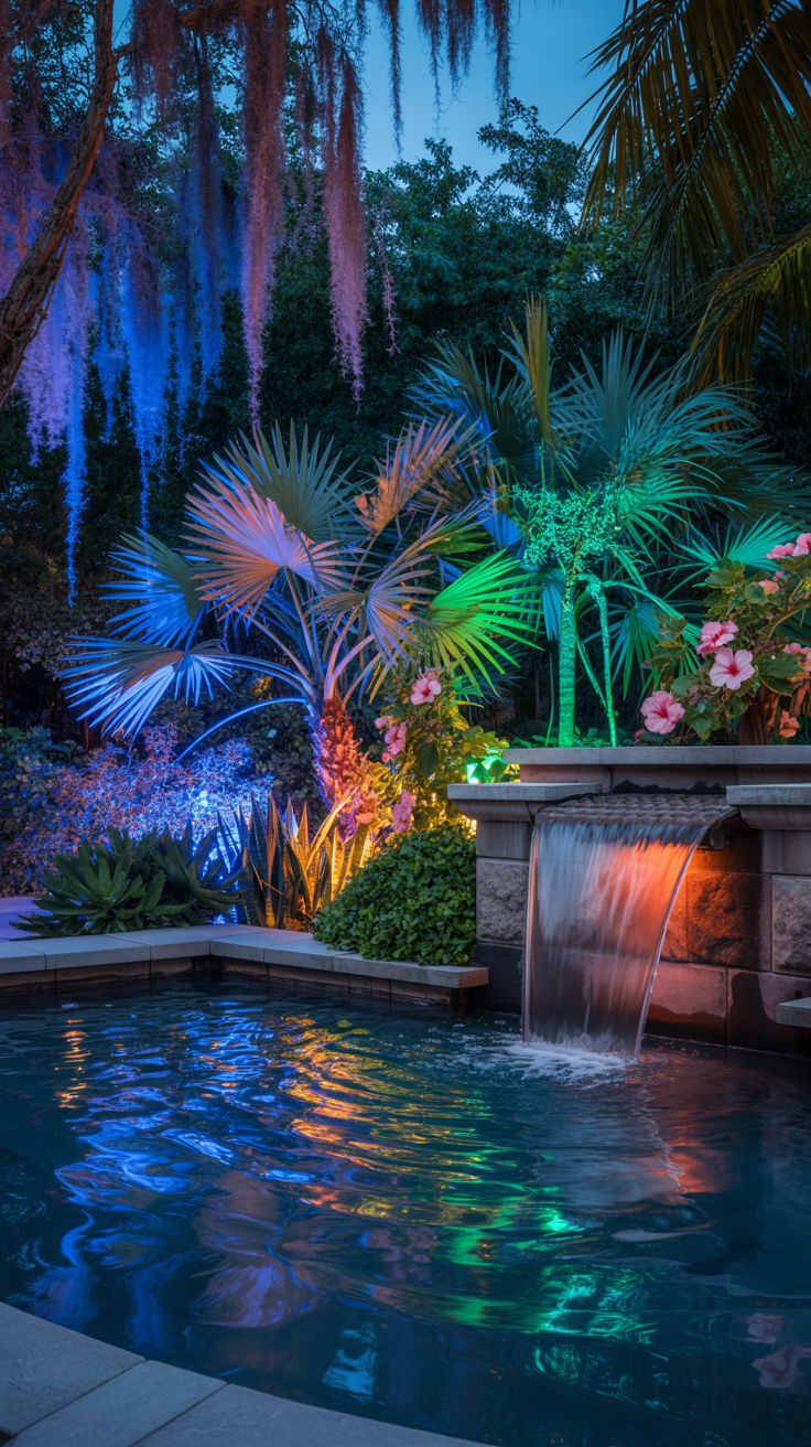 For backyards, the light fixtures are created to be water-resistant. Be free to install them in one of your backyard water design to create colorful illusions and also brighten it up.