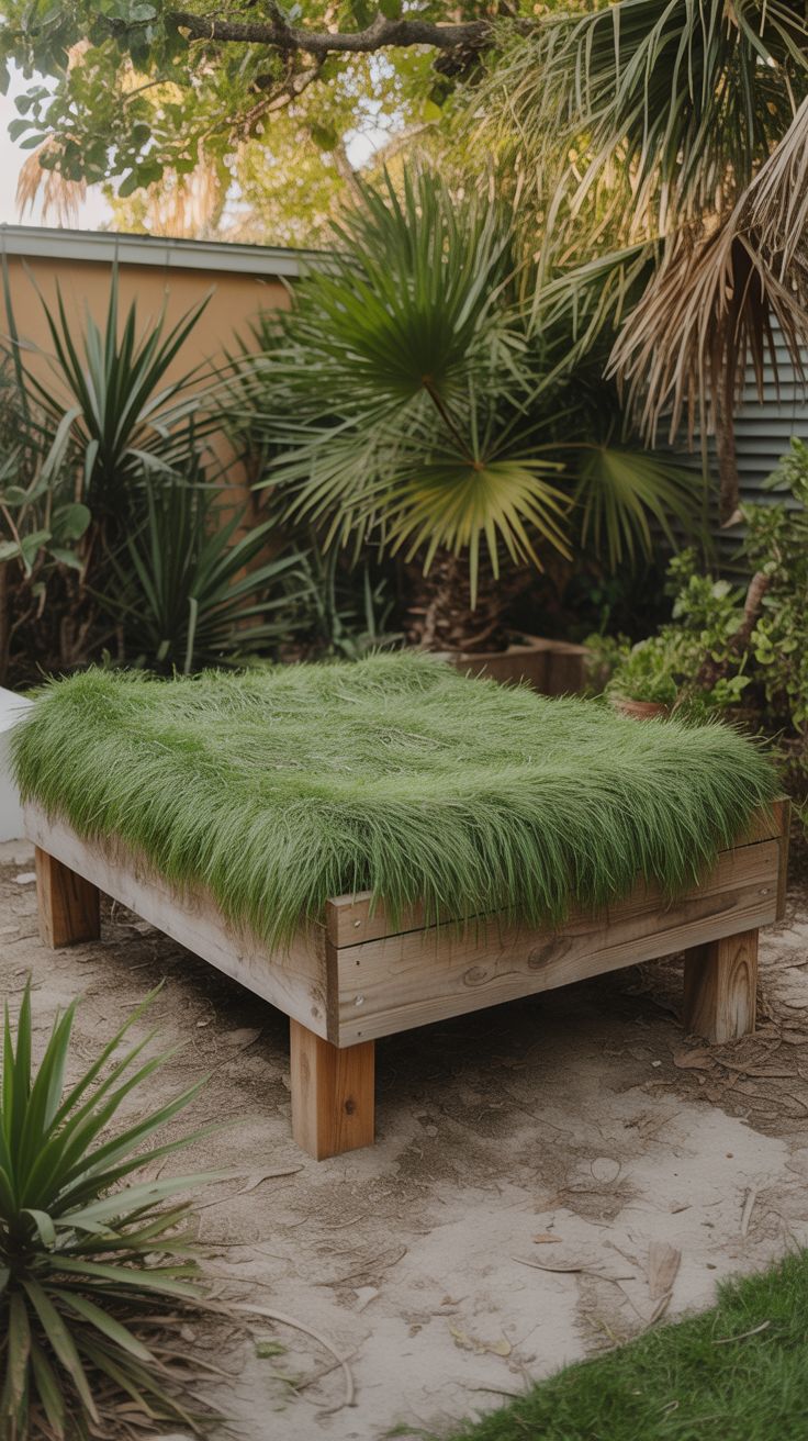 Using good old timber and sleeping grass, you can create a chilling space for those lazy weekends. The grass bed is one of the most creative landscape backyard ideas around.