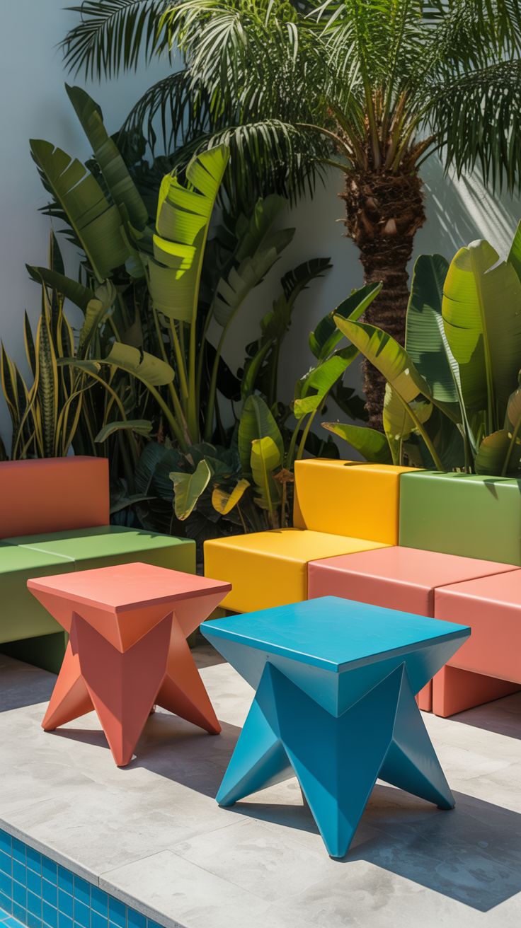 Be creative. Come out of your comfort zone and think of other ways you can come up with other designs of outdoor furniture. Be confident enough to match geometry with bold colors that will express your creativity.