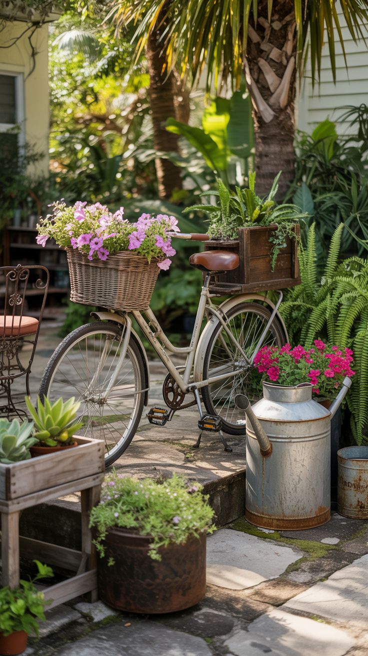 Do you have old stuff in your compound? Do not be quick to throw or give it away. Things like old kitchen pots, bicycles, metallic cans, etc. can be used to give a unique spice to your garden.