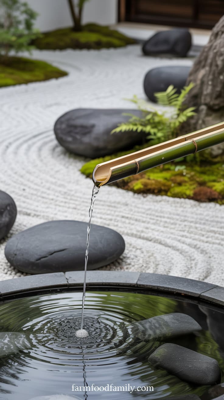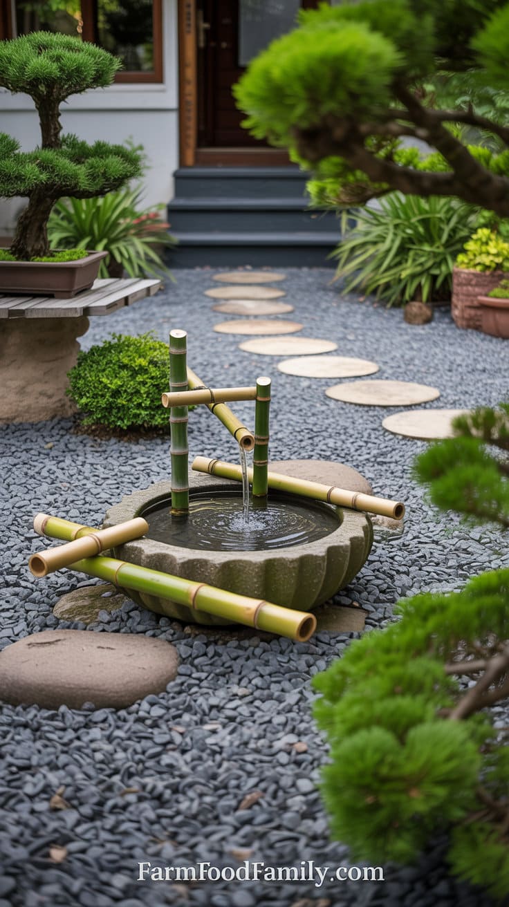 Consider adding a Japanese-style bamboo fountain, also known as a shishi-odoshi, to your front yard for a peaceful vibe.