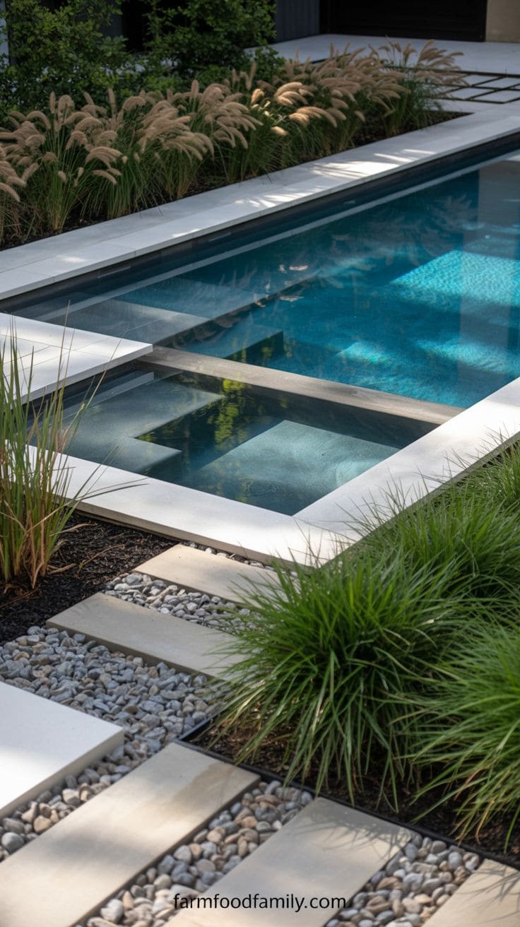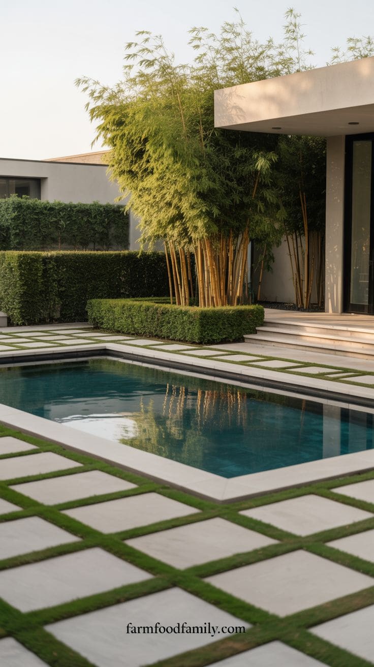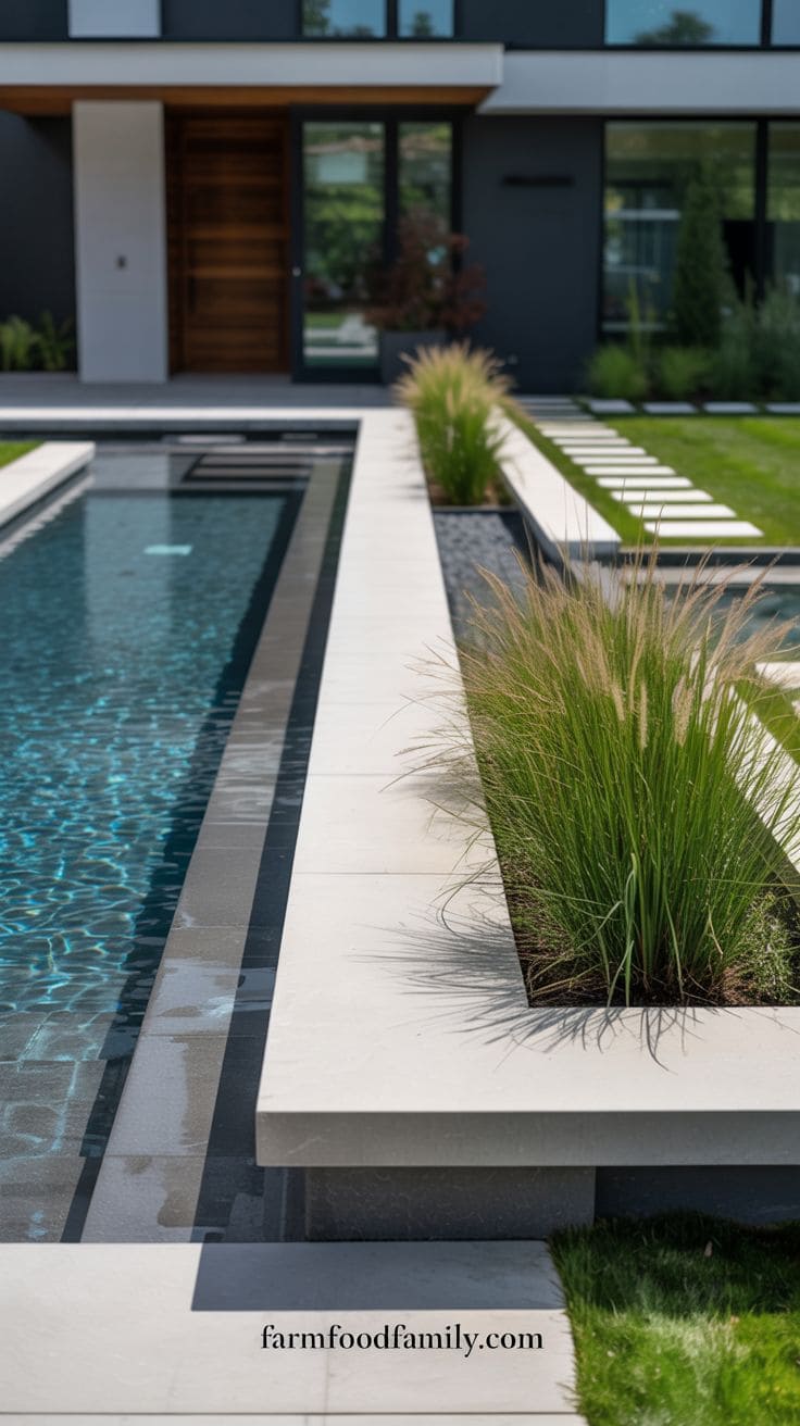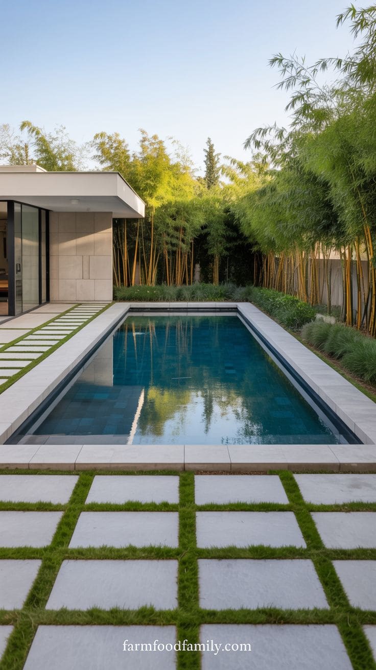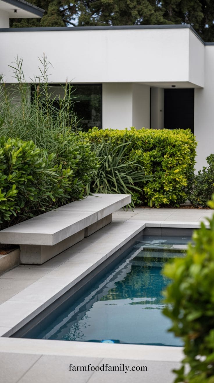 1. Modern Rectangle Pool with Accent Greenery