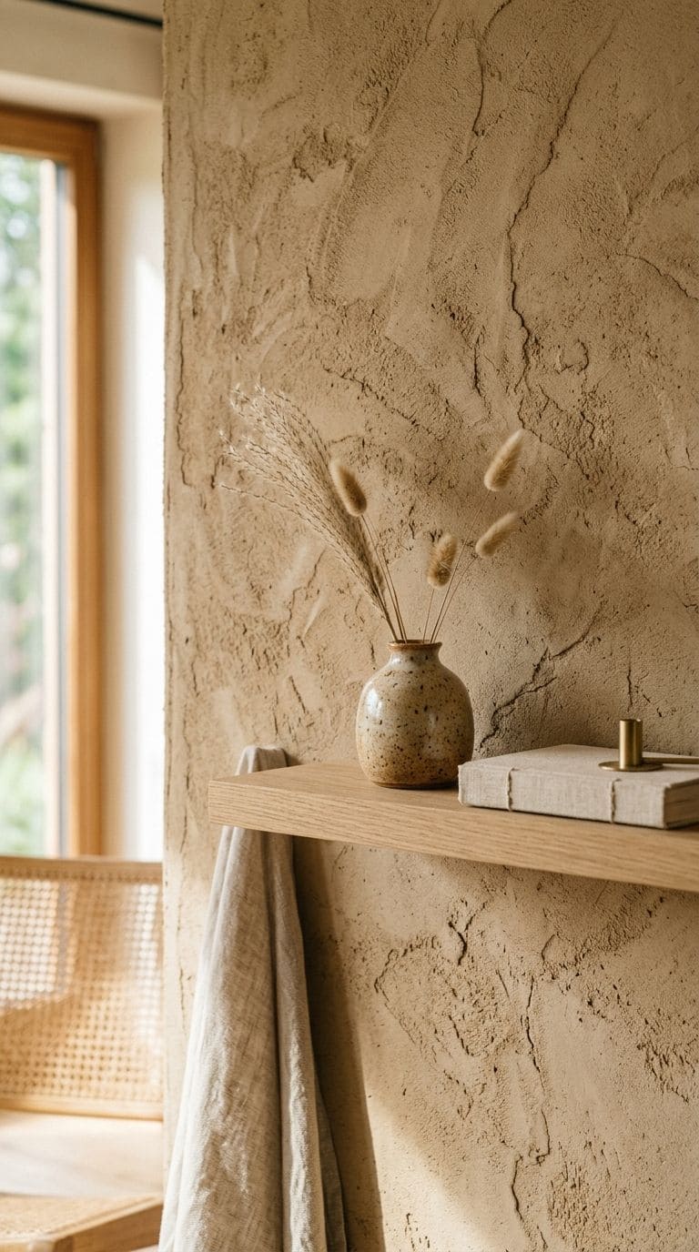 Give your walls some texture with plaster or clay finishes. They enhance the tactile feel and add a natural, earthy element.
